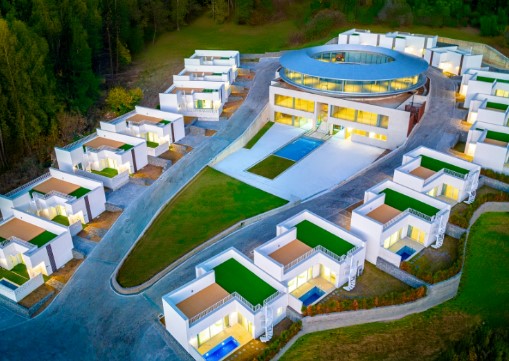 촬영지는 현대적인 건축물과 자연이 어우러진 공간으로, 특히 중앙에 위치한 원형 건물은 큰 유리 파사드와 수영장이 있어 시각적으로도 매력적입니다. 이러한 공간은 출연자들에게 심리적 압박을